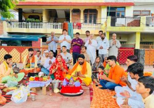 पुरोहितों के द्वारा वैदिक मंत्रोचारण कर महादेव के भजनों को गाया गया। रुद्राभिषेक के समापन पर पार्षद योगेन्द्र शर्मा के द्वारा प्रसाद क्षेत्रीय लोगों को वितरित किया गया।
