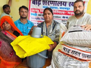 बाढ़ पीड़ितों को दी गई राहत सामग्री