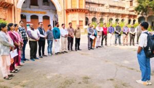फिरोजाबाद। नशा मुक्ति अभियान के पाँच वर्ष पूर्ण होने के अवसर पर नगर के प्रमुख एस.आर.के. (पीजी) कॉलेज में नशा मुक्ति व्याख्यान एवं शपथ ग्रहण कार्यक्रम आयोजित किया गया। कार्यक्रम में छात्र-छात्राओं को नशा के दुष्प्रभावों के प्रति जागरूक किया गया तथा नशा मुक्त जीवन का संकल्प दिलाया गया। प्रभारी प्राचार्य प्रो. रवि महेश्वरी ने सभी विद्यार्थियों को नशा मुक्ति की शपथ दिलाते हुए कहा कि “नशा मुक्त युवा फॉर विकसित भारत” केवल एक नारा न बने, बल्कि हर युवा के जीवन का संकल्प हो। उन्होंने युवाओं से नशे से दूर रहने और समाज को स्वस्थ एवं विकसित बनाने का आह्वान किया। इस अवसर पर प्रो. एम.ए. सिद्दीकी, प्रो. ए.बी. चौबे, प्रो. प्रशांत अग्रवाल, नीरज अग्रवाल, पंकज भारद्वाज, प्रो. अमर प्रकाश, कविता अग्रवाल, डॉ. अखिलेश कुमार, पवन तैनगुरिया, दीपक पचौरी, रितु शर्मा, कृष्णदेव, डॉ. यशपाल सिंह, जितेंद्र गोस्वामी, हरेन्द्र बघेल सहित महाविद्यालय के एनएसएस व एनसीसी कैडेट्स तथा बड़ी संख्या में छात्र-छात्राएं उपस्थित रहे।