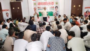 मथुरा। उत्तर प्रदेश कांग्रेस कमेटी के निर्देश पर जिला कांग्रेस कमेटी मथुरा की मासिक समीक्षा बैठक सेठवाड़ा स्थित जिला कांग्रेस कार्यालय में जिलाध्यक्ष मुकेश धनगर की अध्यक्षता में आयोजित हुई। बैठक में मुख्य अतिथि जोनल कोऑर्डिनेटर व पूर्व विधायक अनिल चौधरी ने मथुरा जिले के सभी दस ब्लॉक अध्यक्षों और प्रभारियों से संगठन की प्रगति रिपोर्ट की समीक्षा की।