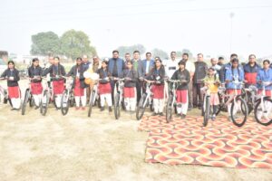 बालिकाओं एवं बालकों को बांटी गई साइकिल व राहगीरों को बांटे गए हेलमेट