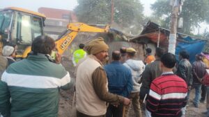 पंडित अनुपम दुबे: कानपुर देहात। तहसील भोगनीपुर क्षेत्र के गांव भोगनीपुर में राष्ट्रीय राजमार्ग के किनारे वर्षों से दुकानों के माध्यम से किए गए अवैध अतिक्रमण के खिलाफ प्रशासन ने सख्त कार्रवाई की। एनएचएआई और उपजिलाधिकारी भोगनीपुर के संयुक्त अभियान में अवैध अतिक्रमण हटाते हुए सड़क के दोनों ओर से कब्जा मुक्त कराया गया।
