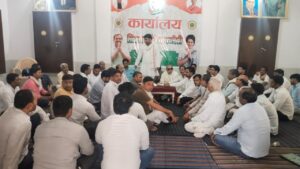 श्याम बिहारी भार्गव: मथुरा। अगस्त क्रांति दिवस के अवसर पर शनिवार को जिला कांग्रेस कमेटी मथुरा द्वारा एक विशेष गोष्ठी का आयोजन सेठवाड़ा स्थित जिला कांग्रेस कार्यालय पर किया गया। यह कार्यक्रम कांग्रेस जिलाध्यक्ष मुकेश धनगर के नेतृत्व में आयोजित हुआ, जिसमें स्वतंत्रता संग्राम सेनानियों की स्मृति में उन्हें श्रद्धांजलि अर्पित की गई।