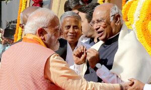 कार्यक्रम के दौरान प्रधानमंत्री नरेंद्र मोदी और कांग्रेस अध्यक्ष व राज्यसभा में विपक्ष के नेता मल्लिकार्जुन खरगे के बीच बेहद गर्मजोशी भरी मुलाकात देखने को मिली। दोनों नेताओं ने हाथ मिलाया और हंसी-मजाक करते हुए नजर आए। जिसे ‘राजनीतिक मतभेदों के बीच एक दुर्लभ और सकारात्मक क्षण’ के रूप में देखा गया।