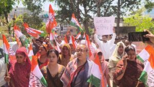 श्याम बिहारी भार्गव: मथुरा। वृंदावन के केशी घाट पर हुई नौका दुर्घटना को लेकर कांग्रेस कार्यकर्ताओं ने मथुरा-वृंदावन नगर निगम के खिलाफ जोरदार प्रदर्शन किया। जिला कांग्रेस अध्यक्ष मुकेश धनगर के नेतृत्व में भूतेश्वर स्थित नगर निगम कार्यालय के मुख्य गेट पर धरना दिया गया और निगम प्रशासन पर लापरवाही व भ्रष्टाचार के गंभीर आरोप लगाए गए। प्रदर्शन को संबोधित करते हुए मुकेश धनगर ने कहा कि वृंदावन में हुई नौका दुर्घटना में पंजाबी श्रद्धालुओं की मौत के लिए मुख्यमंत्री, प्रशासन, पुलिस और तीर्थ विकास परिषद के साथ-साथ नगर निगम भी बराबर का जिम्मेदार है। उन्होंने कहा कि यमुना घाटों और नौकायन से जुड़े नियमों का पालन सुनिश्चित करने में नगर निगम पूरी तरह विफल रहा है, इसलिए नैतिकता के आधार पर महापौर को इस्तीफा दे देना चाहिए।