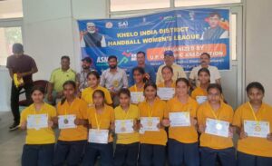 ऊंचाहार, रायबरेली। यू.पी. ओलंपिक एसोसिएशन द्वारा खेलो इंडिया – अस्मिता कार्यक्रम के अंतर्गत नेहरू स्टेडियम, रायबरेली में आयोजित खेलो इंडिया डिस्ट्रिक्ट हैंडबॉल वुमेंस लीग में एस.जे.एस. पब्लिक स्कूल, ऊंचाहार की बालिका टीम ने उत्कृष्ट प्रदर्शन करते हुए रजत पदक हासिल किया। प्रतियोगिता में जिले की विभिन्न टीमों ने भाग लिया, जिसमें एस.जे.एस. पब्लिक स्कूल की छात्राओं ने शानदार खेल का प्रदर्शन करते हुए फाइनल तक का सफर तय किया और दूसरा स्थान प्राप्त किया। समापन समारोह के दौरान सभी विजेता खिलाड़ियों को गणमान्य अतिथियों द्वारा रजत पदक एवं प्रमाण पत्र प्रदान कर सम्मानित किया गया।