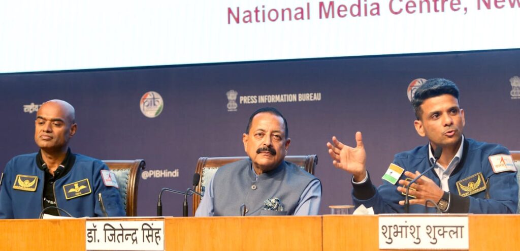 नई दिल्ली। Axiom-4 मिशन से लौटने के बाद भारतीय अंतरिक्ष यात्री ग्रुप कैप्टन शुभांशु शुक्ला ने प्रेस कॉन्फ्रेंस में अपने अनुभव साझा किए। उन्होंने भावुक होकर कहा, “भारत आज भी अंतरिक्ष से सारे जहां से अच्छा दिखता है। जय हिंद, जय भारत।” उन्होंने बताया कि उनका मिशन बेहद सफल रहा और तकनीकी उद्देश्यों को पूरी तरह से प्राप्त किया गया।